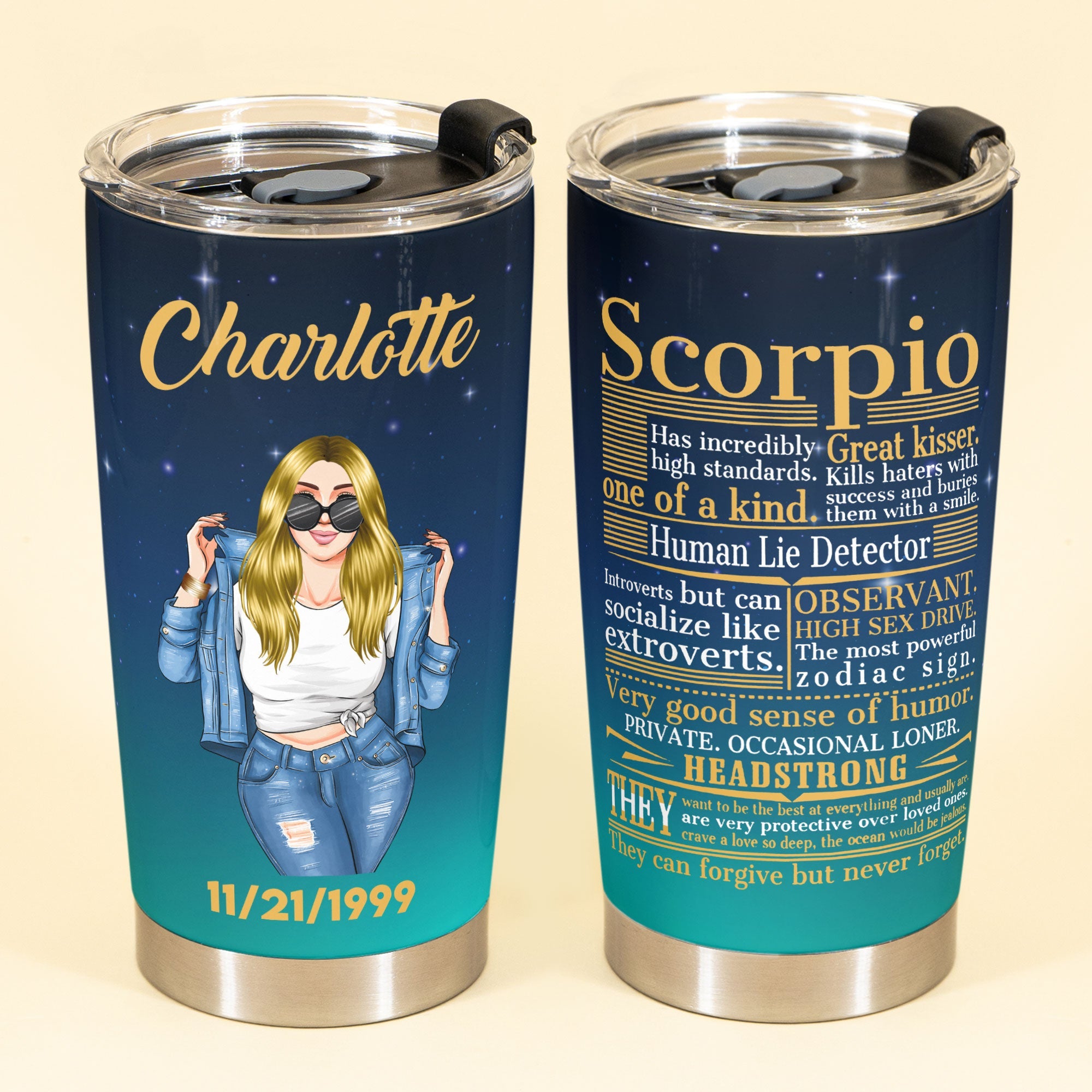 Make the astrology lover in your life starry-eyed with this one-of-a-kind zodiac tumbler. Surprise your best friend on their birthday by customizing it with theirs. Or give it as a graduation gift printed with their zodiac and future aspirations to launch them on their fateful journey ahead. Thrill your bride tribe by gifting these tumblers at your astrology-themed bachelorette bash. With their zodiac signs printed alongside their birth charts and crystal motifs, you all can drink under the stars to your aligned destiny. Let this heavenly tumbler be the perfect gift for the seeker, the dreamer, and the true believer in magic written in the stars. It reminds us we are all made of stardust.