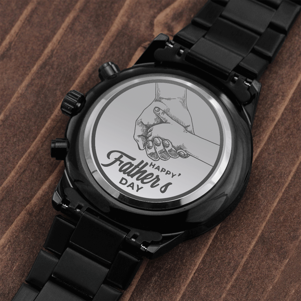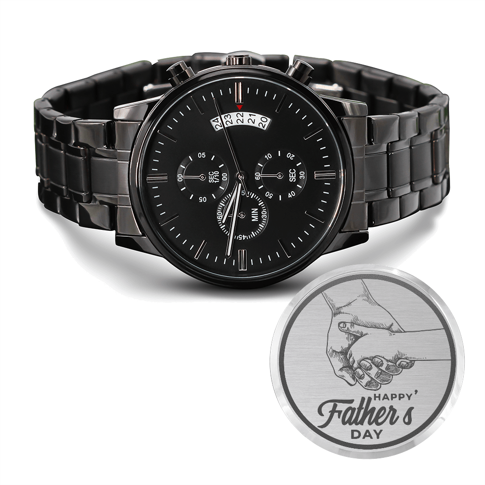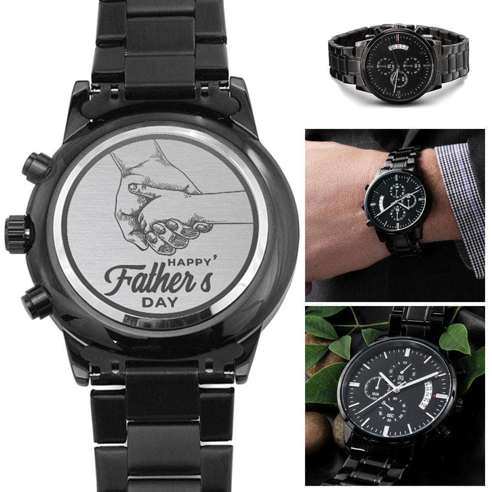A personalized gift that can withstand constant use, this Engraved Design Black Chronograph Watch is the perfect gift for all the special men in your life. A thoughtful groomsmen gift, an anniversary memento, or a long-lasting keepsake for Father’s Day - it's a versatile piece sure to warm hearts and create smiles. Featuring a three-dial face, calendar function, and luxury pointer in a water-resistant and scratch-proof vessel.