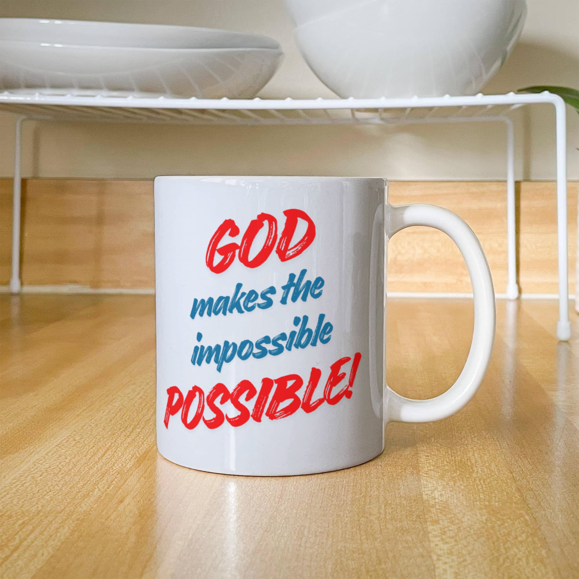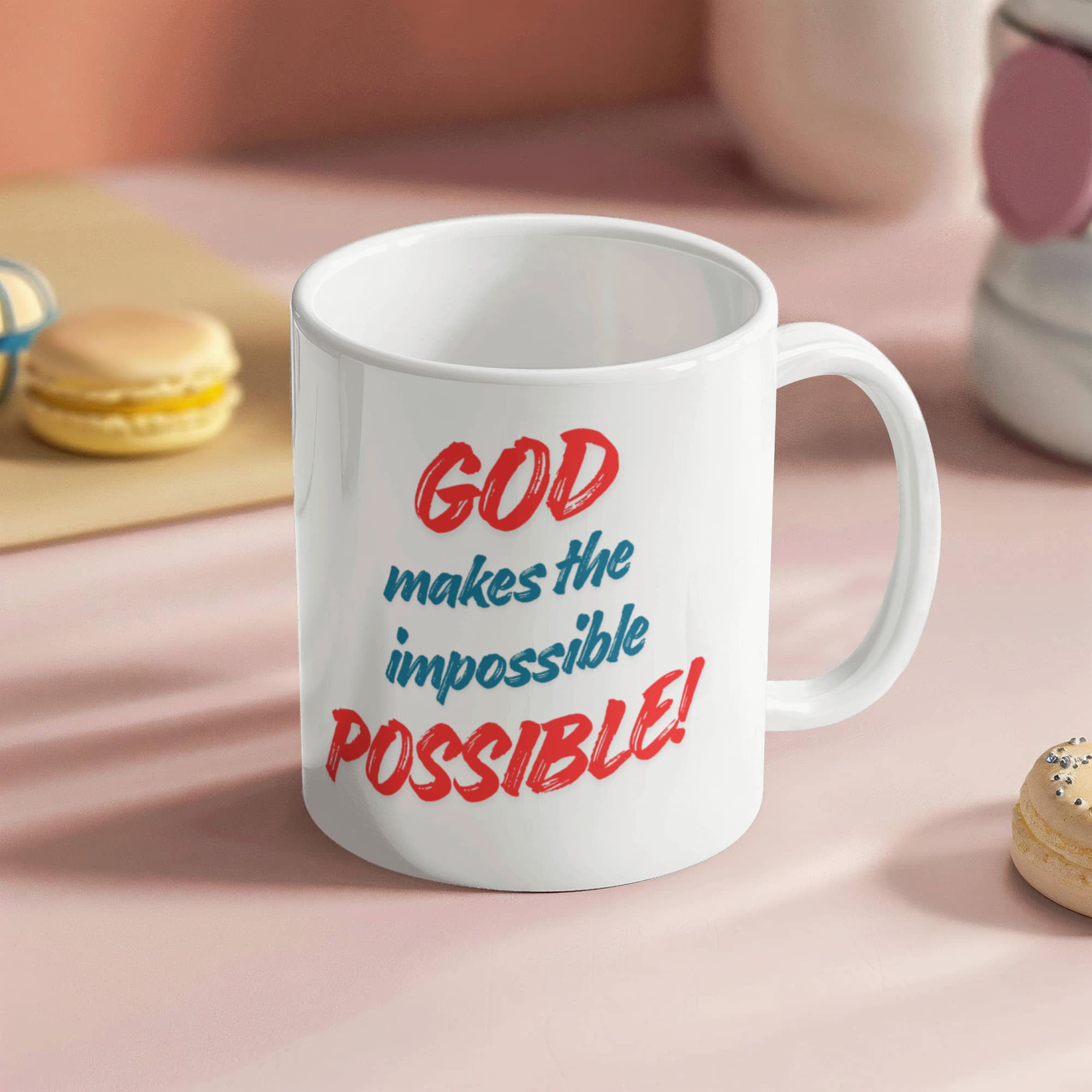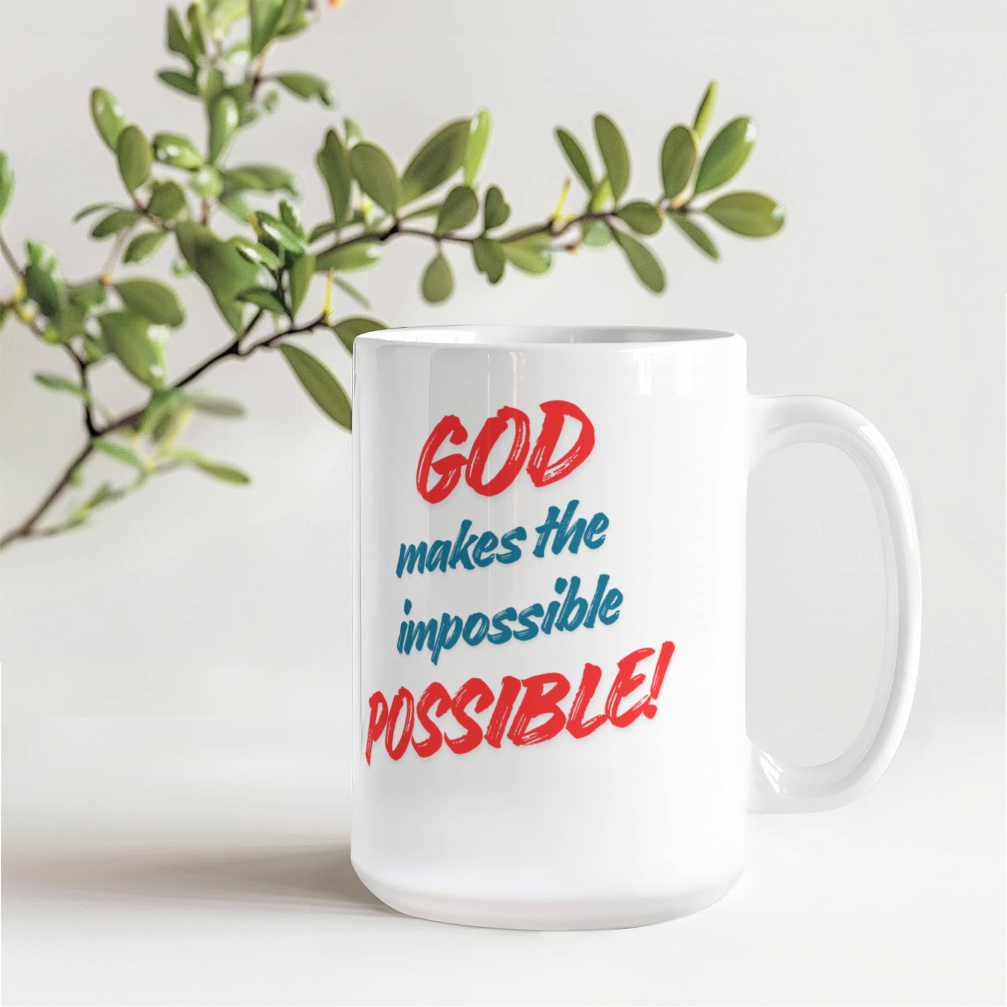 Start your day with a reminder that faith moves mountains. This beautifully designed mug features an uplifting phrase that is a powerful affirmation of hope and divine strength. Perfect for morning coffee, evening tea, or a quiet moment of reflection, this mug brings comfort and encouragement with every sip.
