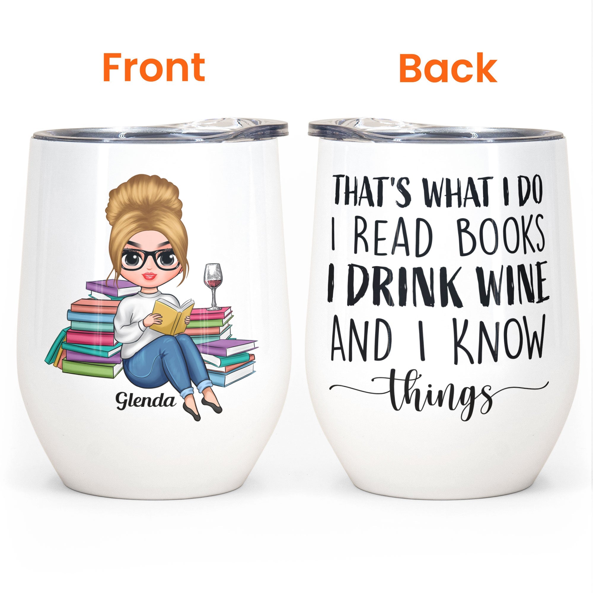 Do you have a bookworm in your life who loves nothing more than curling up with a good novel and a glass of wine? Then our personalized wine tumblers make the perfect gift! These unique tumblers are customized with bookish designs featuring beautiful artwork of stacks of books, quotes about reading, and more. These personalized wine tumblers would make a thoughtful gift idea for an avid reader, librarian, teacher, book club member, or any book lover in your life. They're great for birthdays, holidays, graduation gifts, or just because. The recipient will love having their own personalized cup to unwind with their favorite book and beverage. Let them show off their passion for reading while they sip in style with this custom wine tumbler designed just for bookworms.