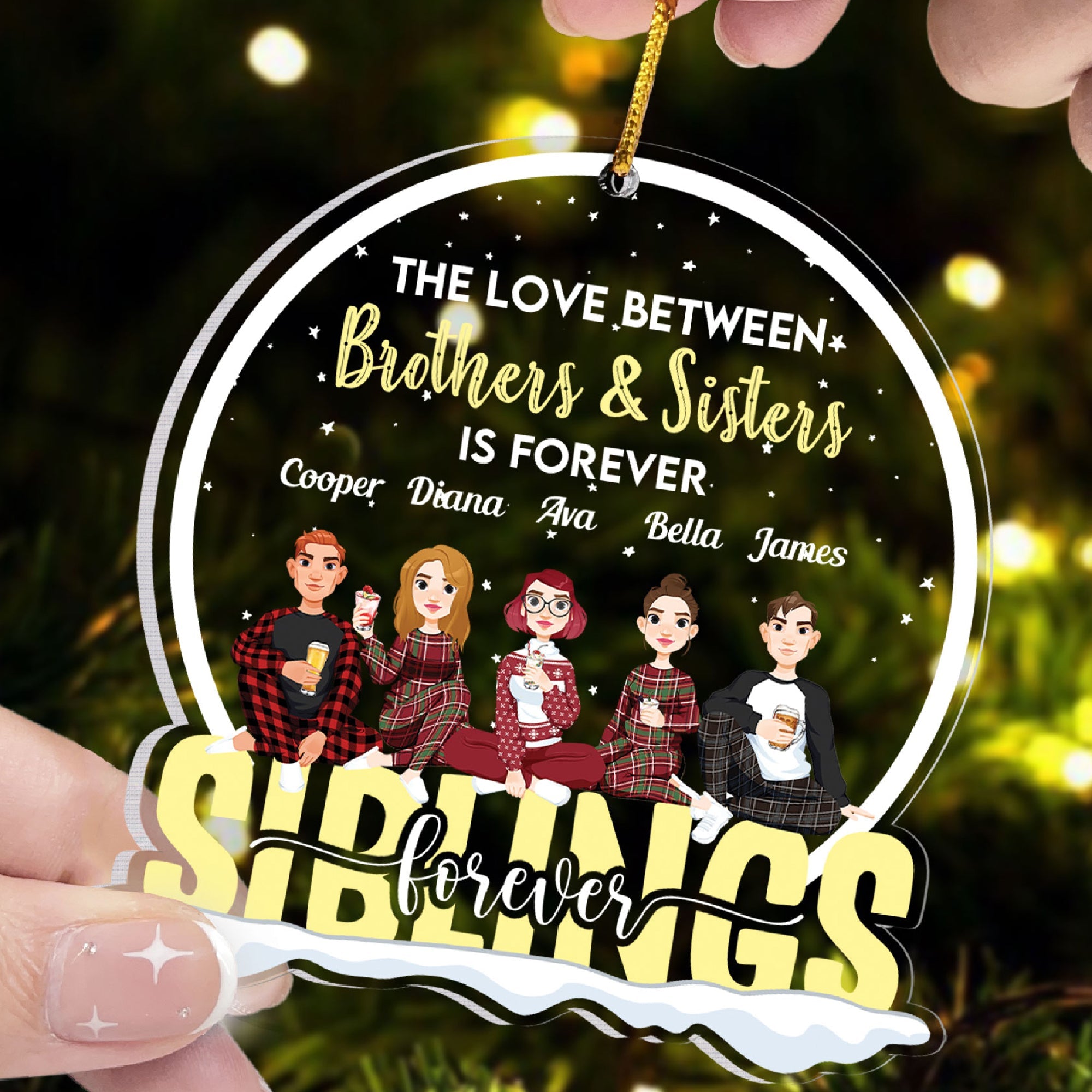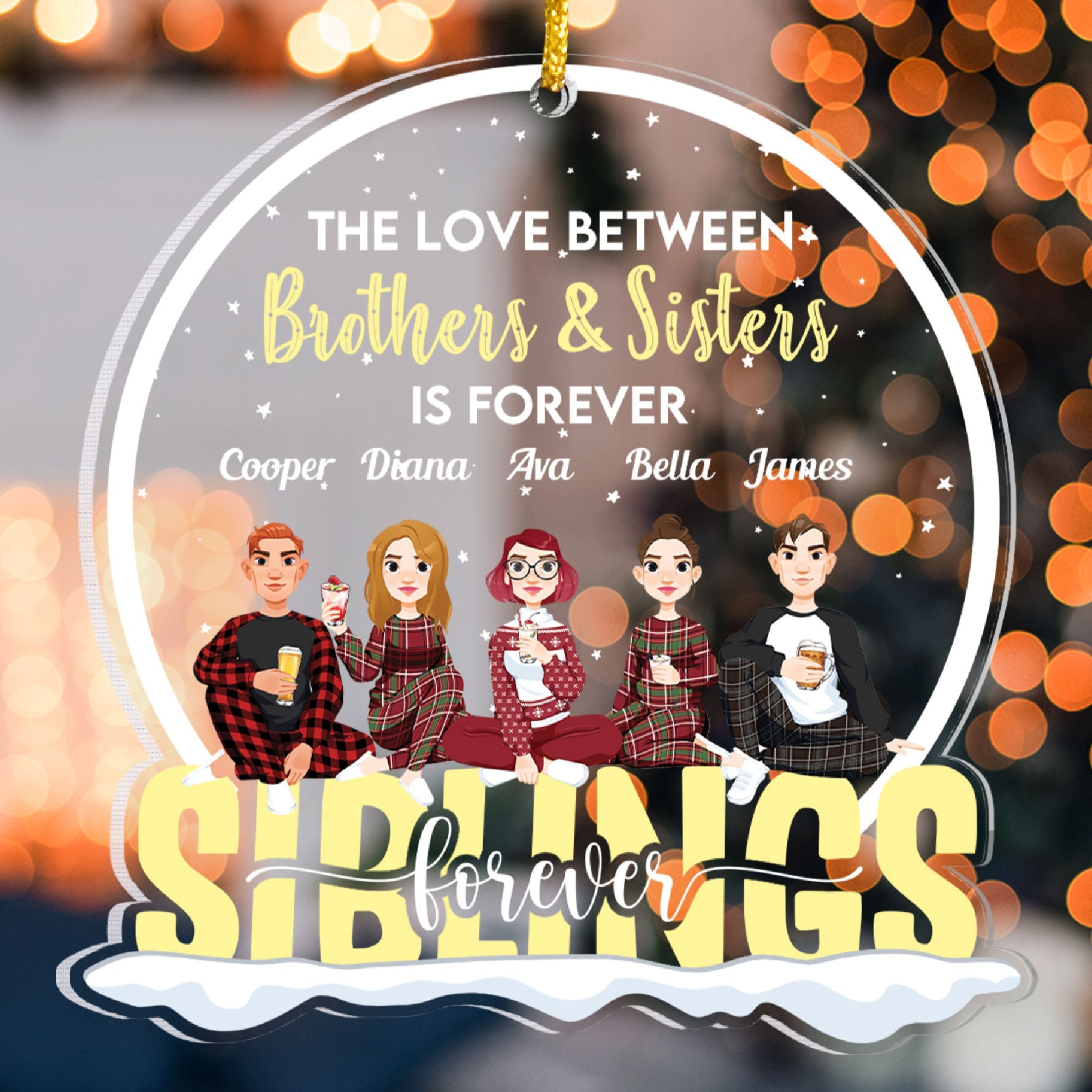 This personalized snow globe shaped acrylic ornament is the ultimate gift for siblings who are forever.